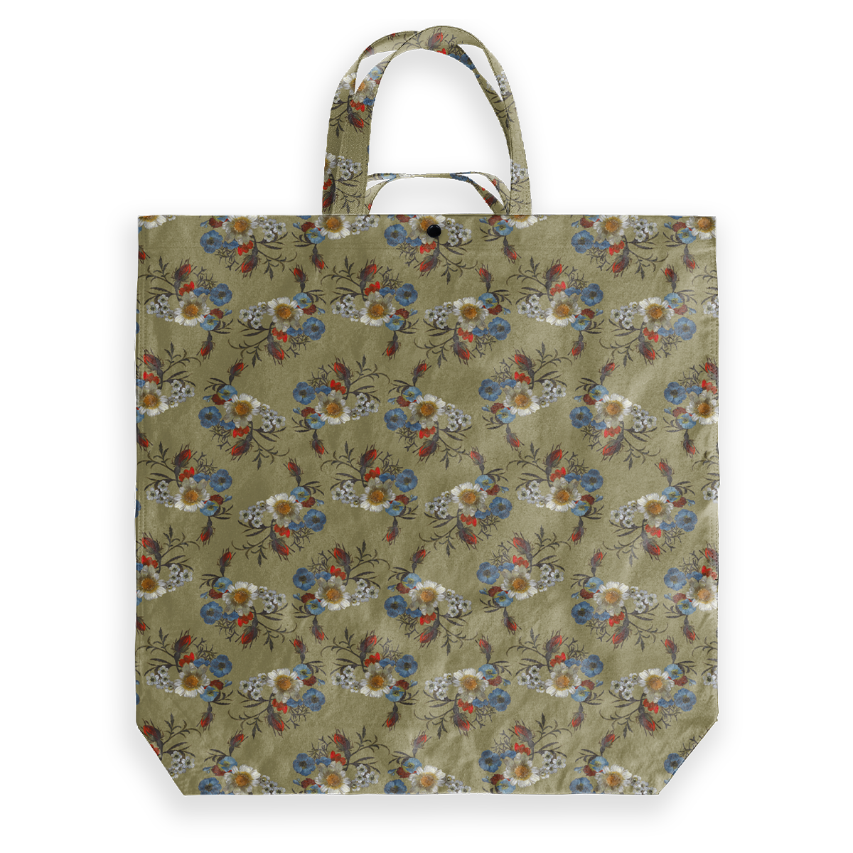 This big shopper inspired by one the many colourful paintings made by Rachel Ruysch! Born in a blooming era in the Netherlands, she revolutionized floral compositions in the 17th and 18th century. With a botanist father's collection, she had access to paint rare flowers and animals. Her talent earned her permission from her father to pursue an art education! While not unique due to a progressive attitude towards female artists, it remained unusual.