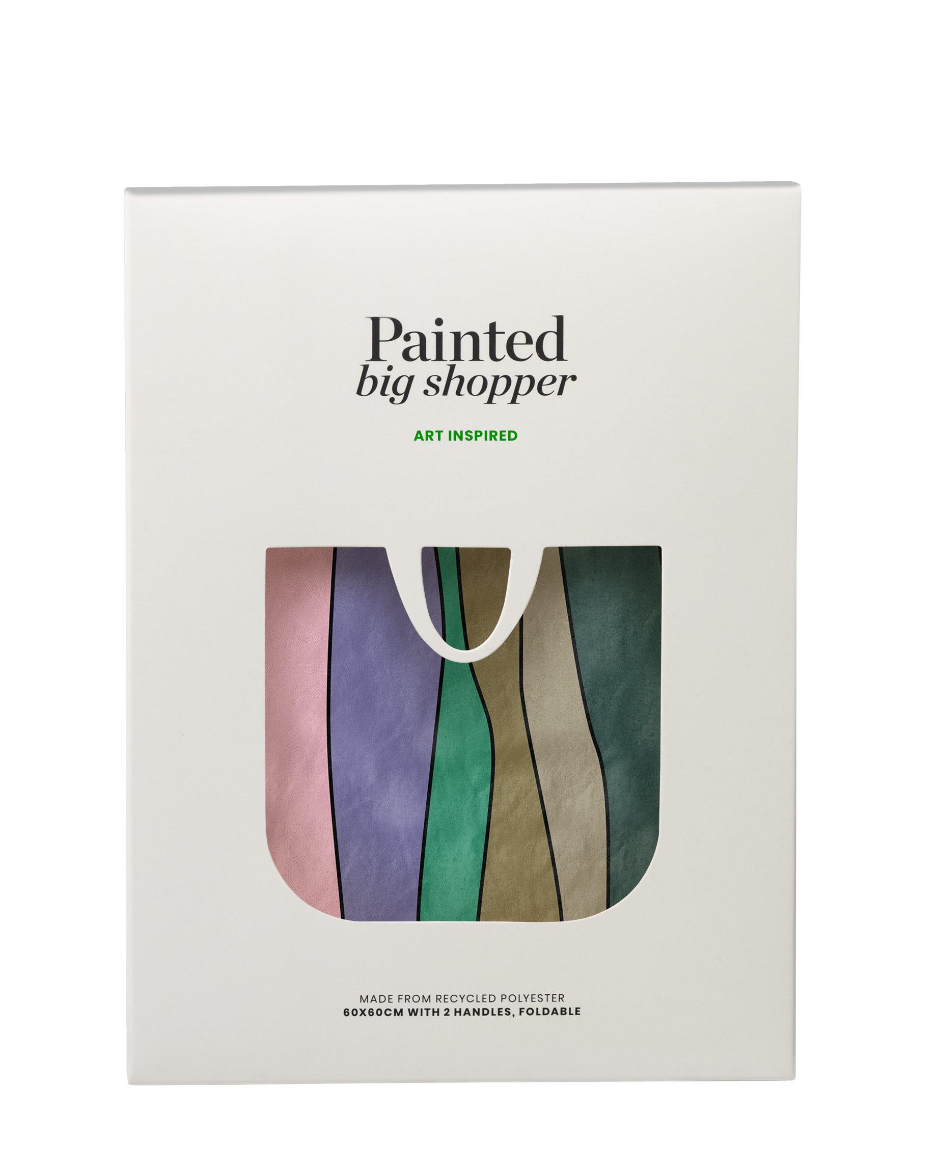 This big shopper is inspired by the portrait Austrian pioneer Egon Schiele (1890-1918) made of his young wife Edith. Schiele is known for his passionate audacity, painting eye- popping nudes that practically come to life on canvas. But here’s the twist: his style changes direction with ‘Portrait of Edith’, a painting that is all about sweetness. Edith wears a dress made from the curtains in his studio, a touching symbol.