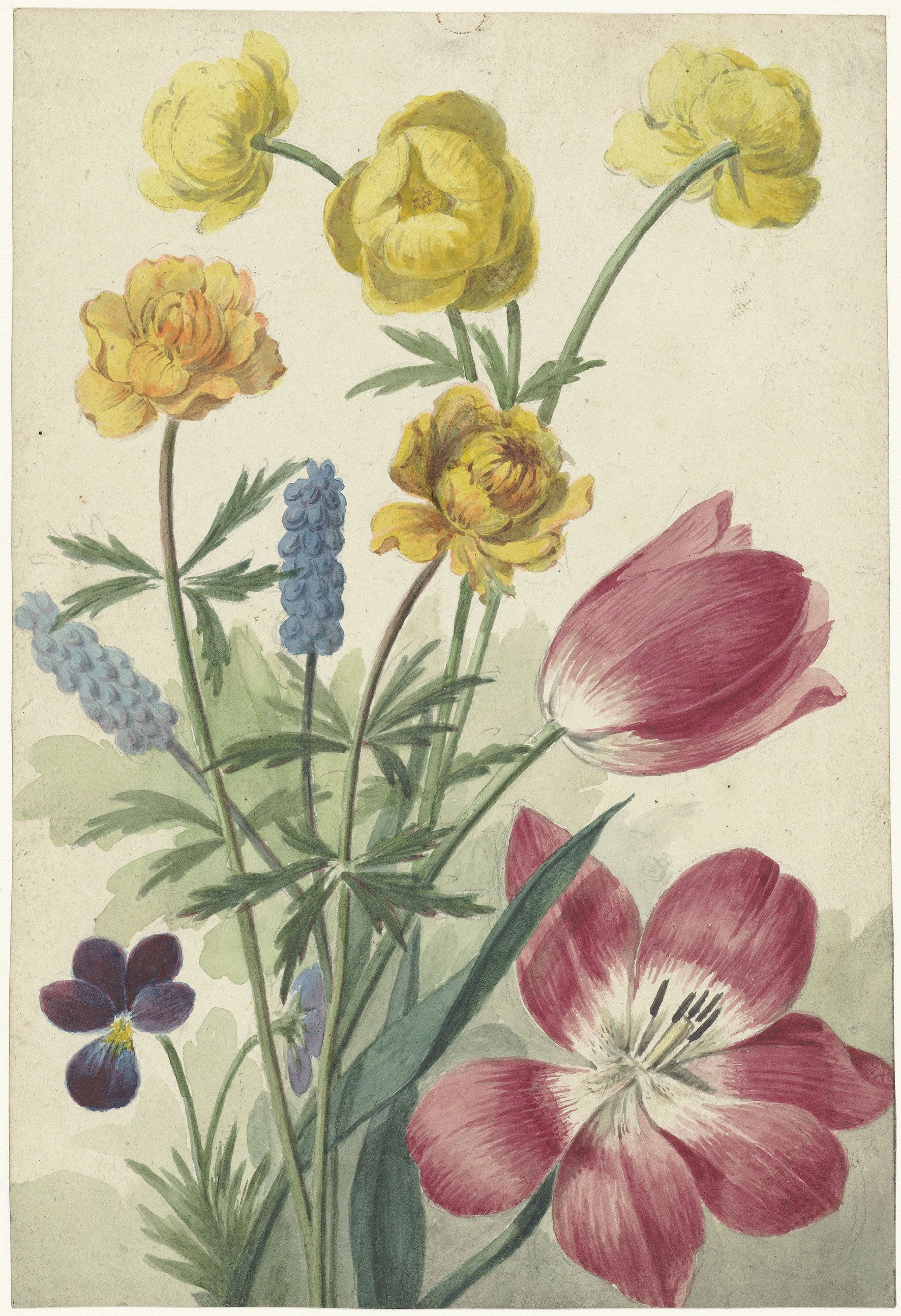 The scenery of this fragile bouquet might very well have been the pleasant and peaceful 'Jardin des Plantes' in the heart of Paris. This was the quiet haven where Van Leen could withdraw from the busy city life when he was living in Paris in his twenties, most likely witnessing the French Revolution in 1789!