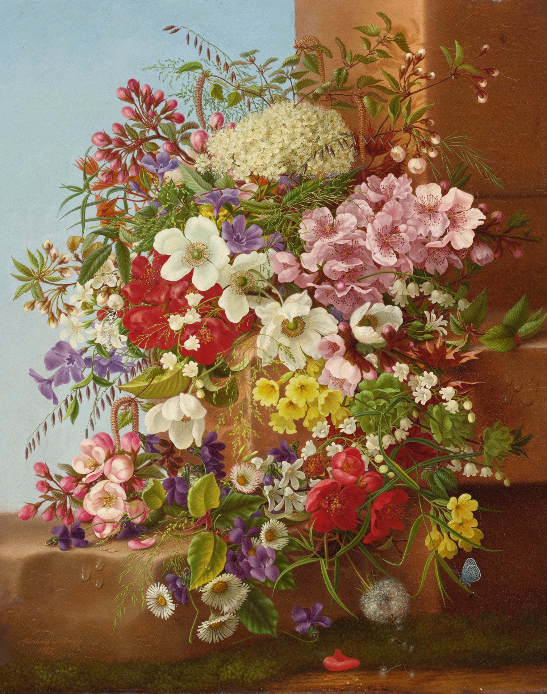 Despite her breathtaking still lifes, her work has remained relatively understudied. Today, some 50 paintings are known to exist, by far the majority in American private hands. Indeed, by the mid-19th century, Americans were fond of German artists, and paintings by Adelheid Dietrich took part in several exhibitions across the country. Yet there is no evidence that Dietrich herself ever visited the country of her fan base...