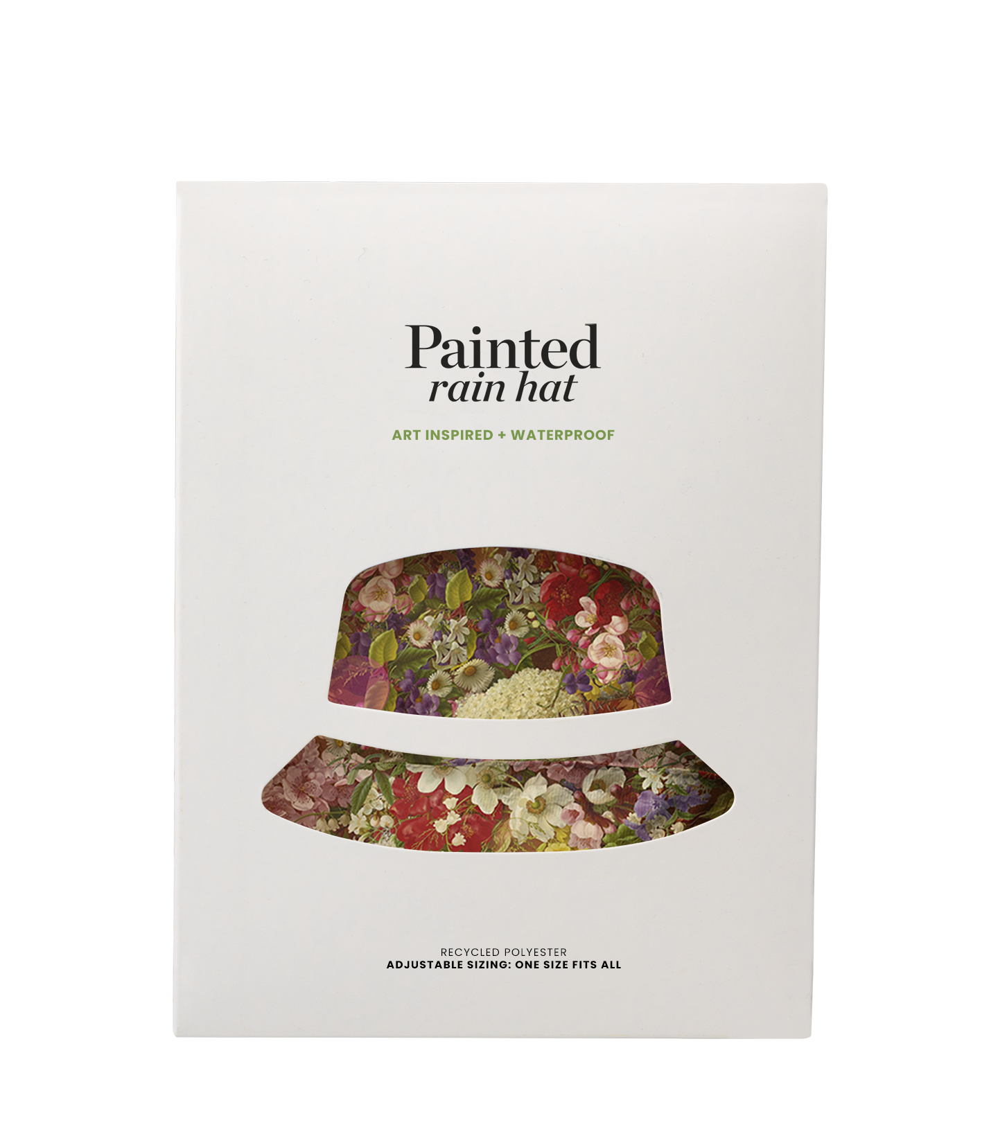 This rain hat is inspired by a 19th century botanical painting by German artist and botanical illustrator Adelheid Dietrich. She was skilled in painting incredibly detailed and realistic flowers and plants, a feast for the eyes. Because of the precision for showing plants so accurately, her paintings were often used for scientific studies. Dietrich was on that level, that her work was often compared to those of world famous 17th century Dutch stil life painters!