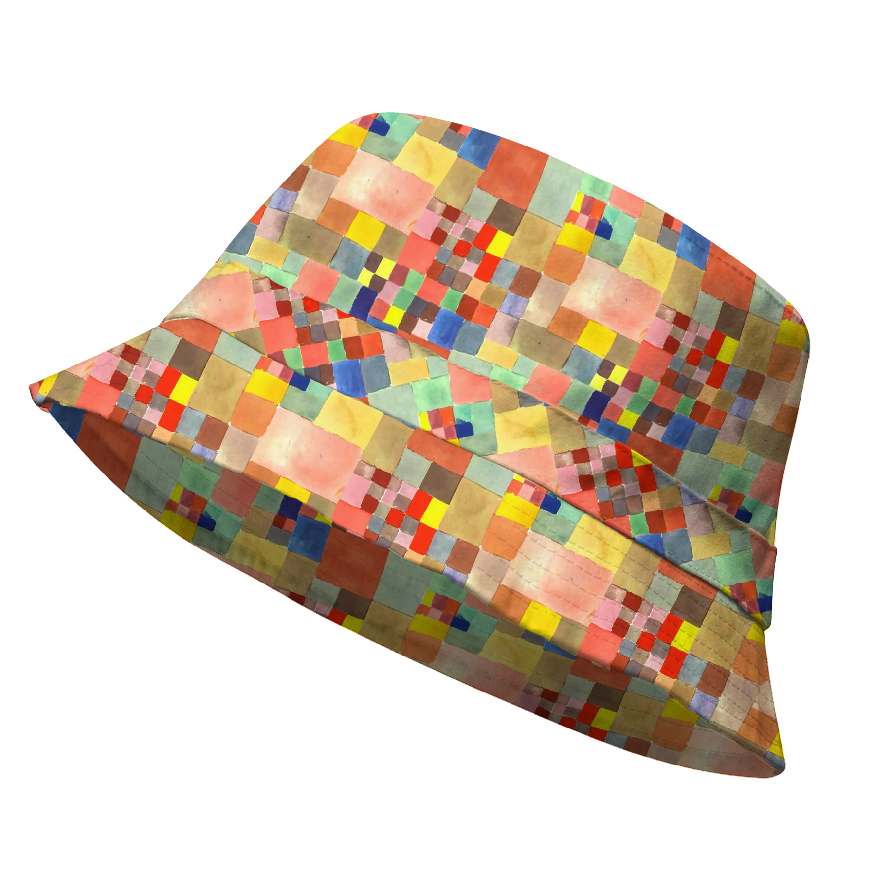 This rainhat is inspired by ‘Flora on Sand’ (1927), a whimsical work by the Swiss German artist Paul Klee. He had a knack for turning everyday things into playful, dreamlike puzzles. In this painting, he imagined plants growing a surreal desert... A place where geometry meets nature in the most unexpected ways!
